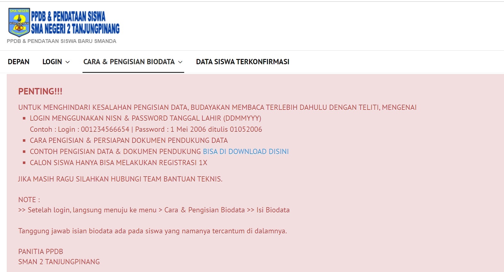 SMA NEGERI 2 TANJUNGPINANG; PPDB yang dilaksanakan secara online oleh SMA Negeri 2 Tanjungpinang telah berakhir, para calon peserta didik baru yang telah berhasil dinyatakan lulus seleksi mengikuti beberapa rangkaian kegiatan. Kegiatan tersebut dilaksanakan dibawah koordinasi Wakil Kepala Sekolah Bidang Kesiswaan Bapak Maryanto,S.Pd,MM dengan tetap melakukan komunikasi yang aktif dengan Kepala Sekolah SMA Negeri 2 Tanjungpinang Bapak Drs. KARIADI.