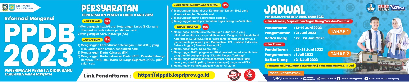 PENERIMAAN PESERTA DIDIK BARU SMA NEGERI 2 TANJUNGPINANG TAHUN AJARAN 2023/2024